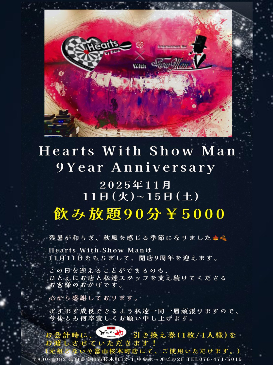 私達と一緒に働きませんか?「Hearts With ShowMan」は、マジック、ダーツ、カラオケが楽しめるエンターテイメントバーです。